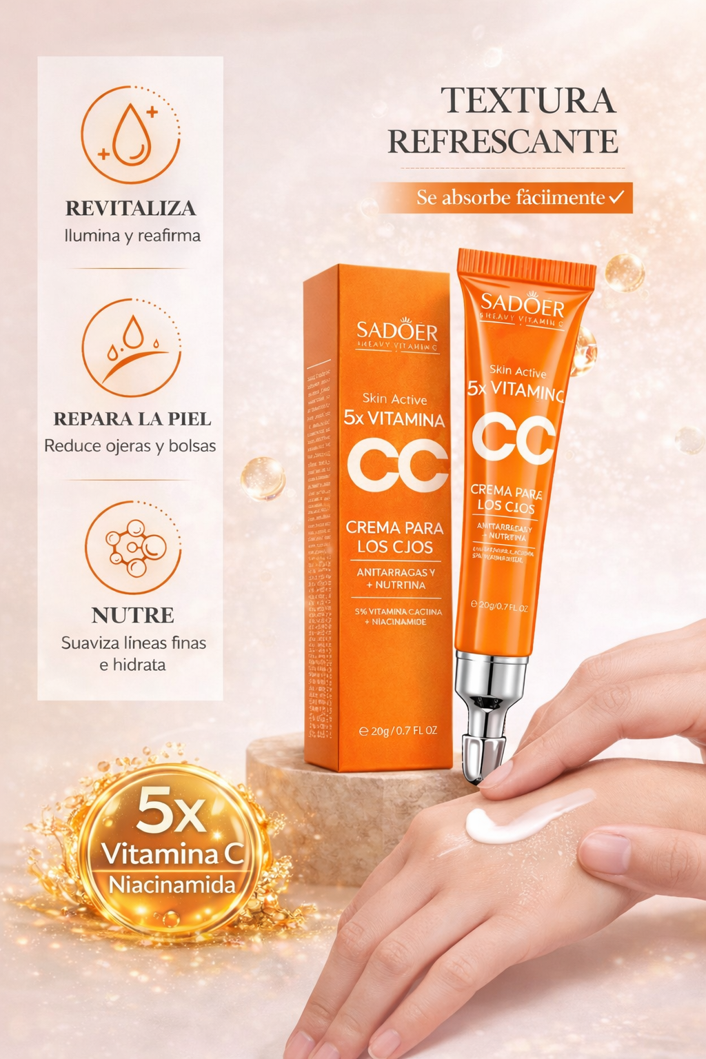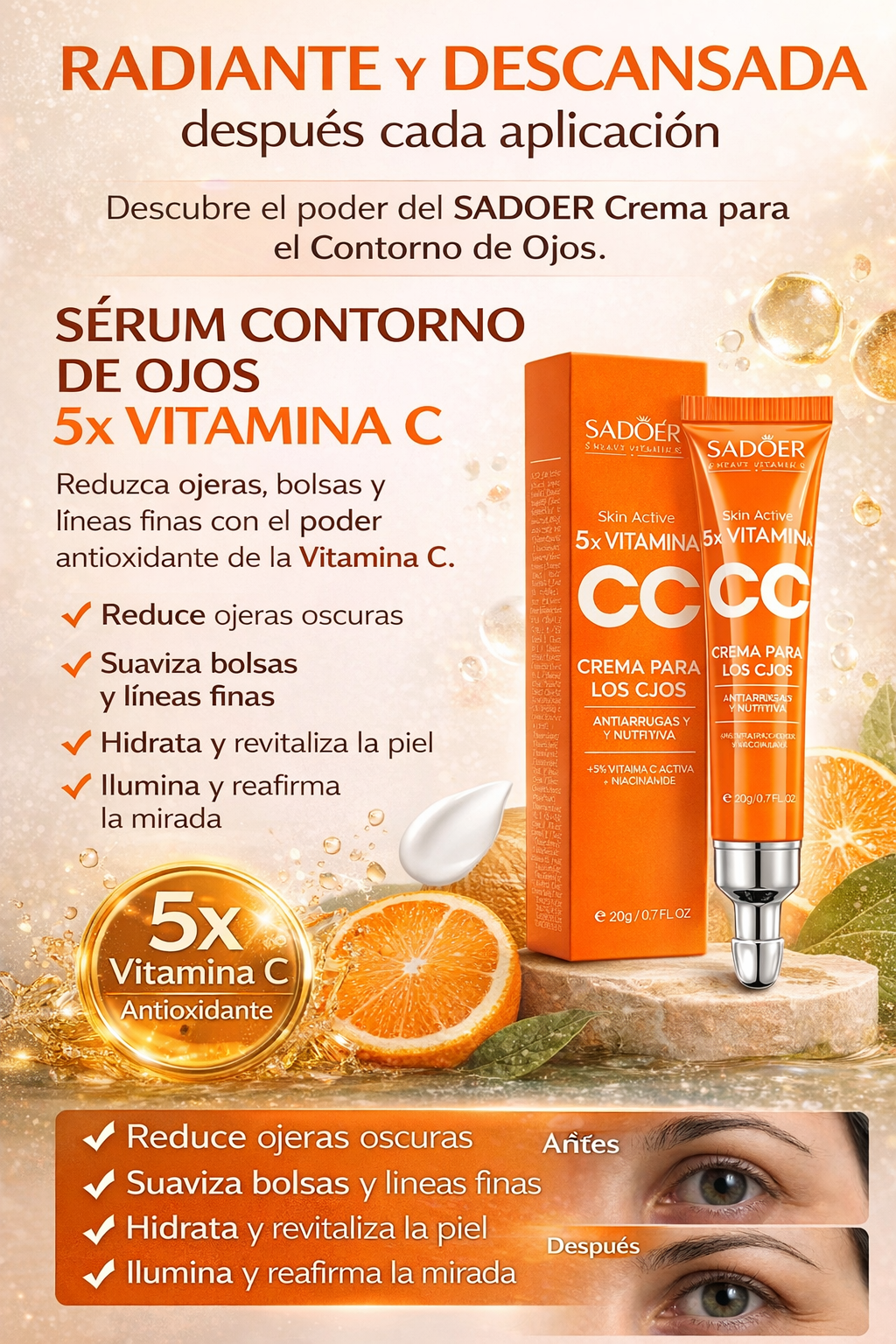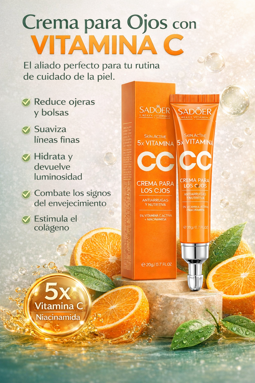 Contorno de Ojos Iluminador con Vitamina C Activa y Niacinamida – 20 ml
