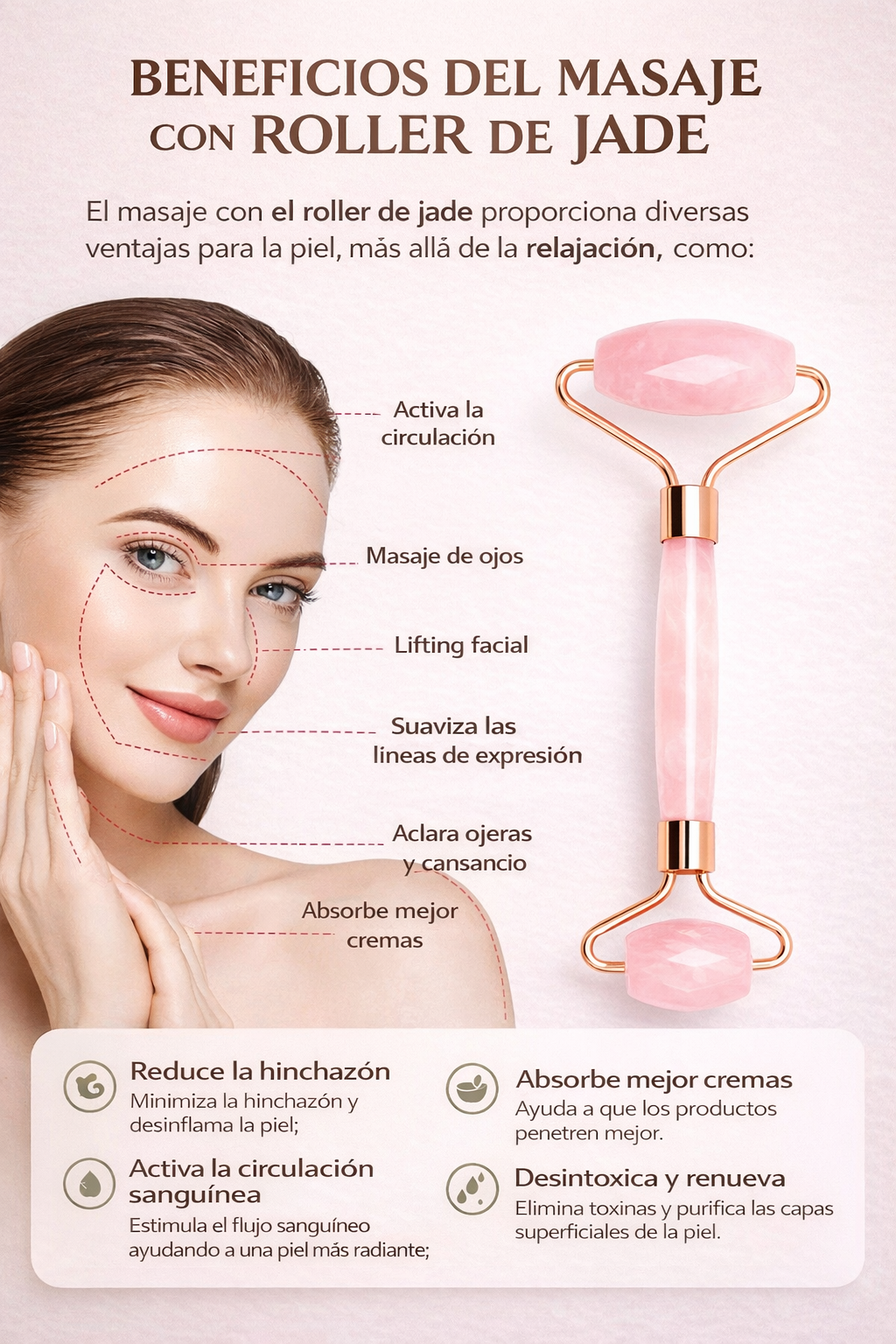 Jade Roller - Rolo de Massagem Facial de Piedra Natural