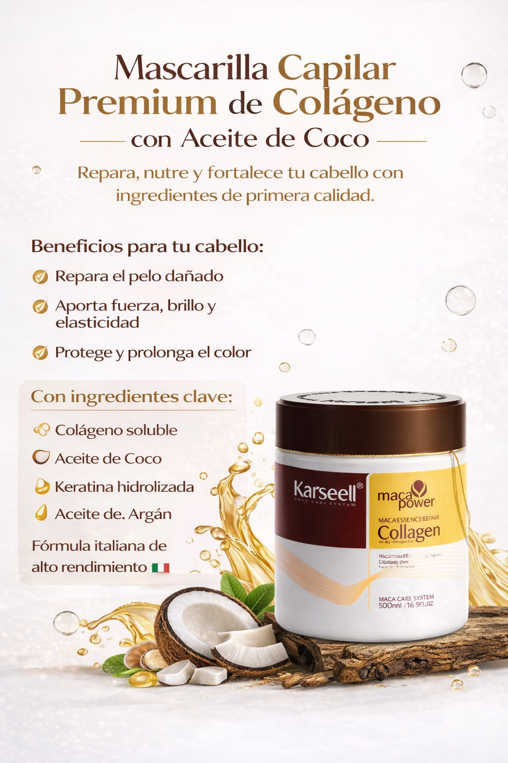 Mascarilla Capilar Premium de Colágeno con Aceite de Coco