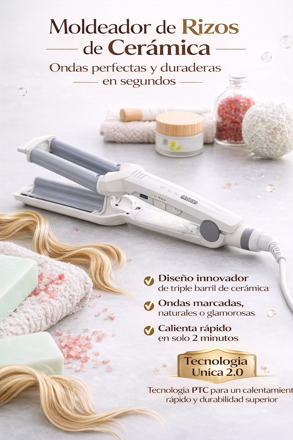 Moldeador de Rizos de Cerámica Wavio 55W - Ondas Perfectas y Duraderas