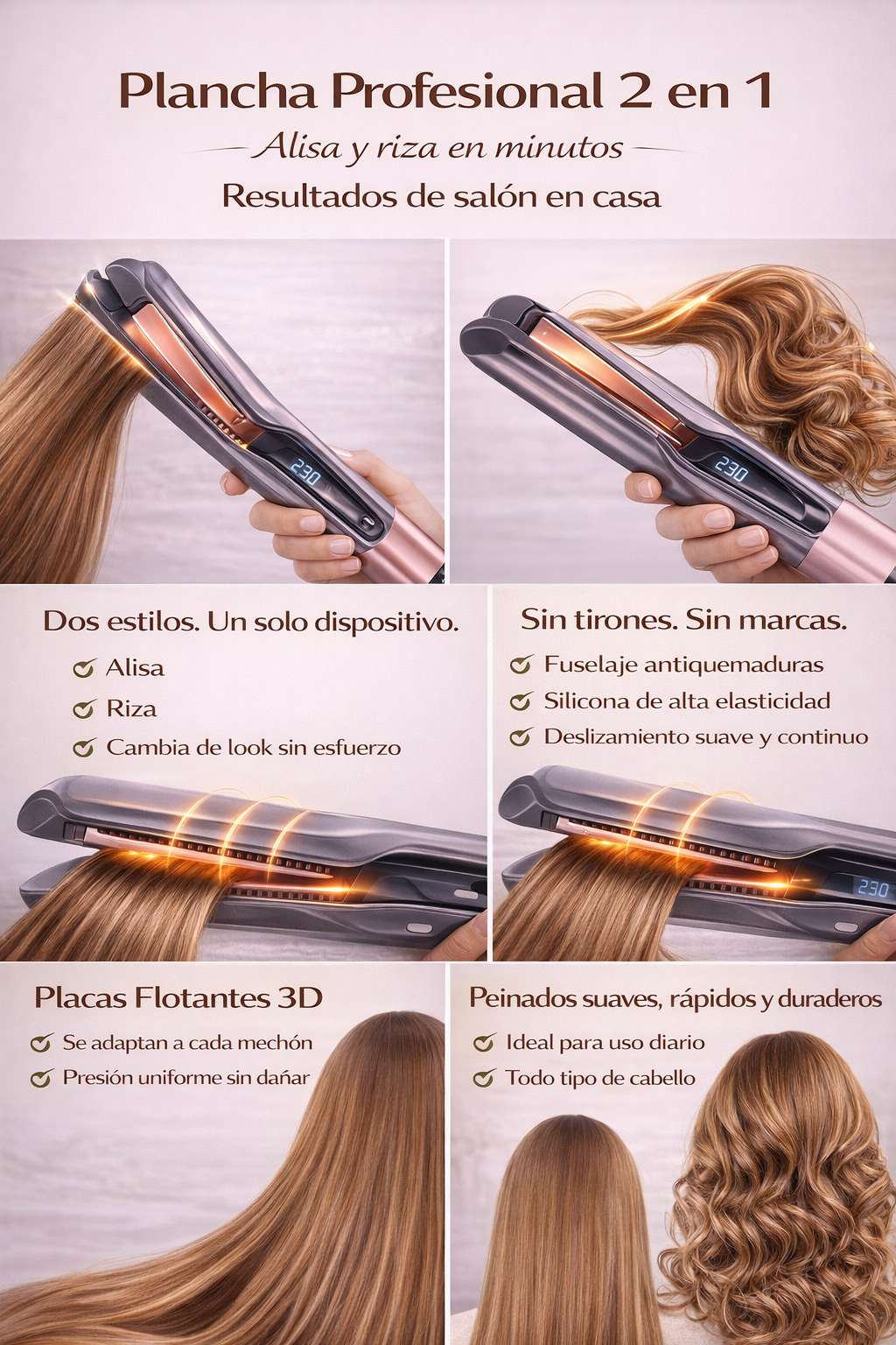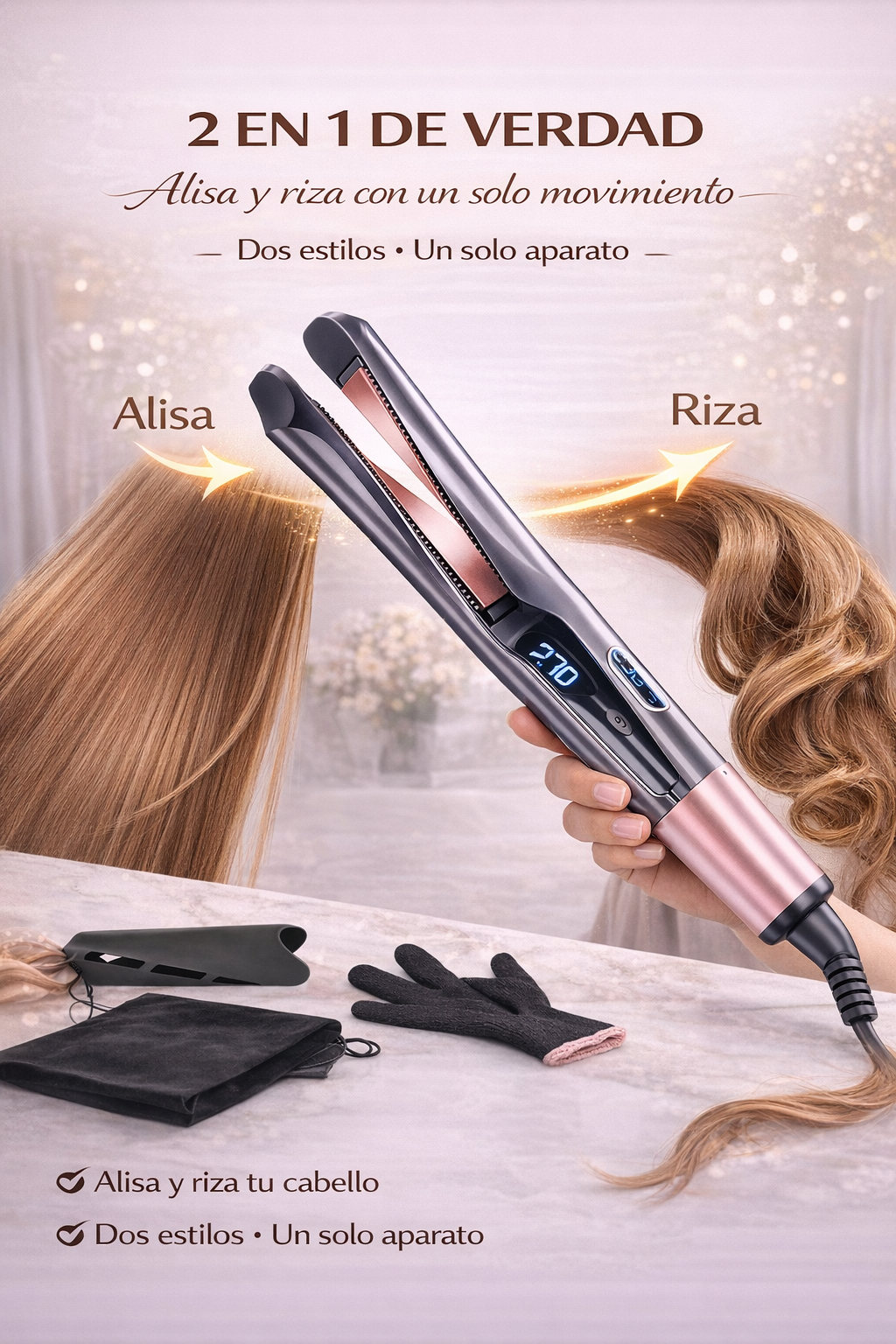 Plancha Alisadora y Rizadora 2 en 1 Profesional