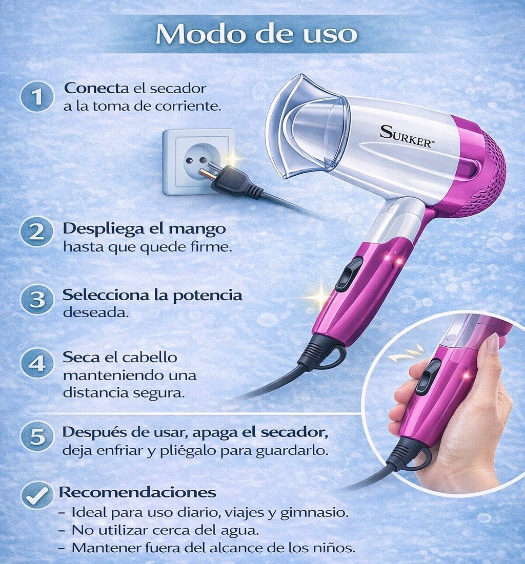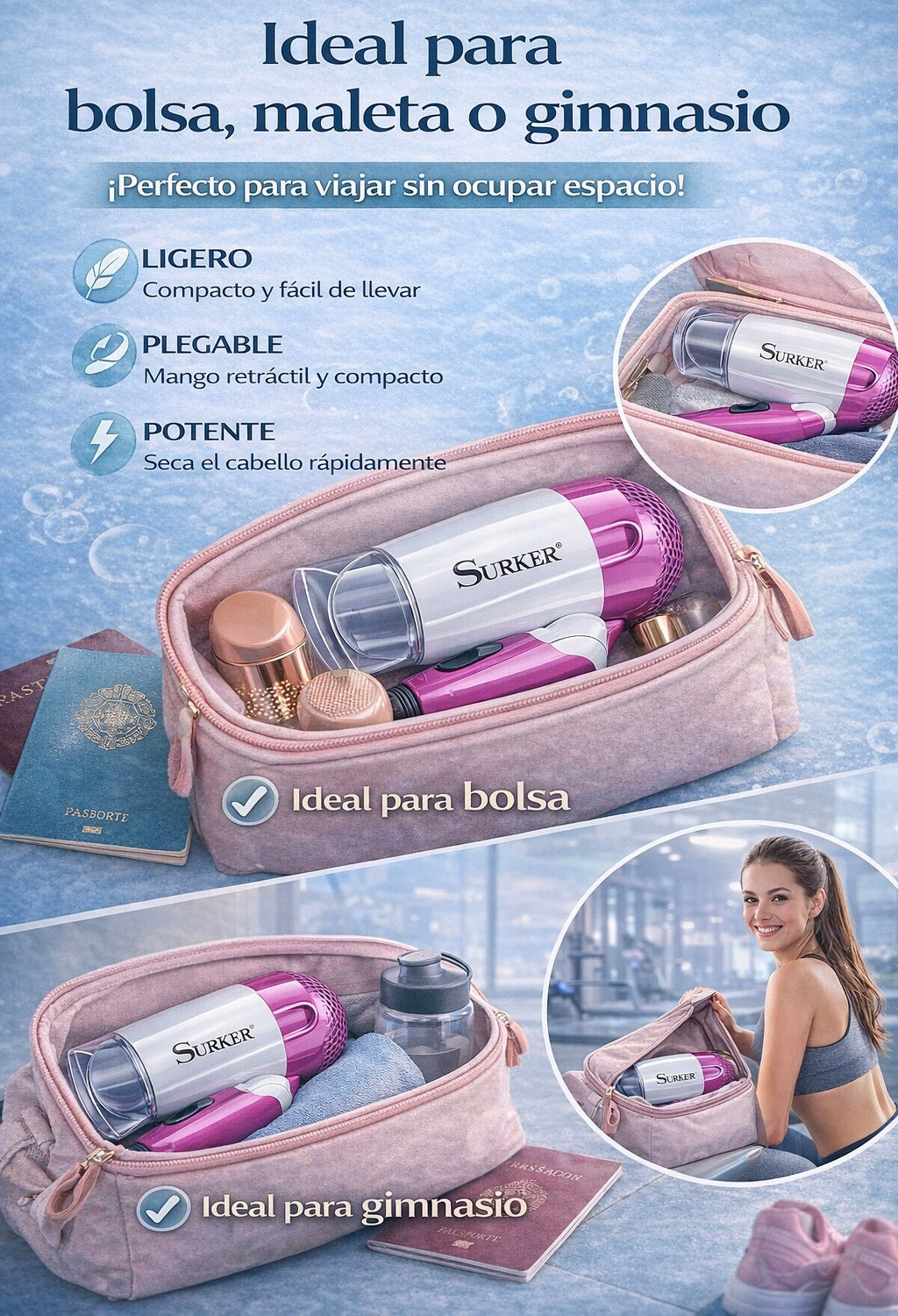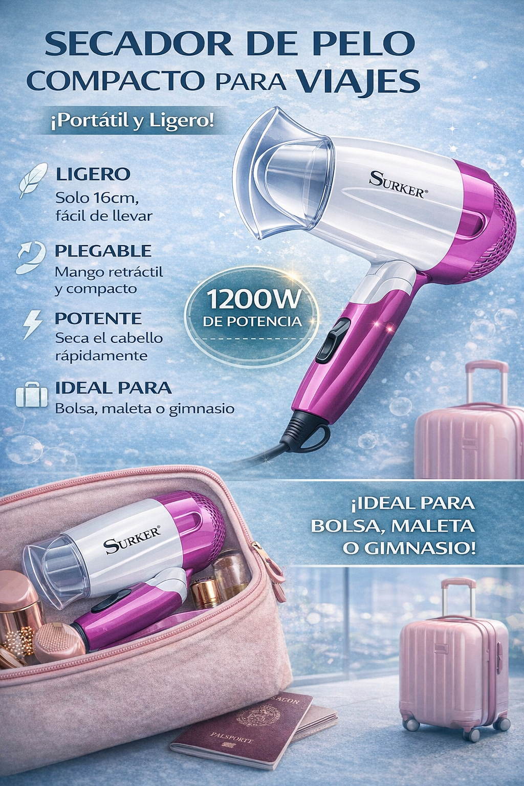 Secador de Pelo Compacto para Viaje - Portátil y Ligero
